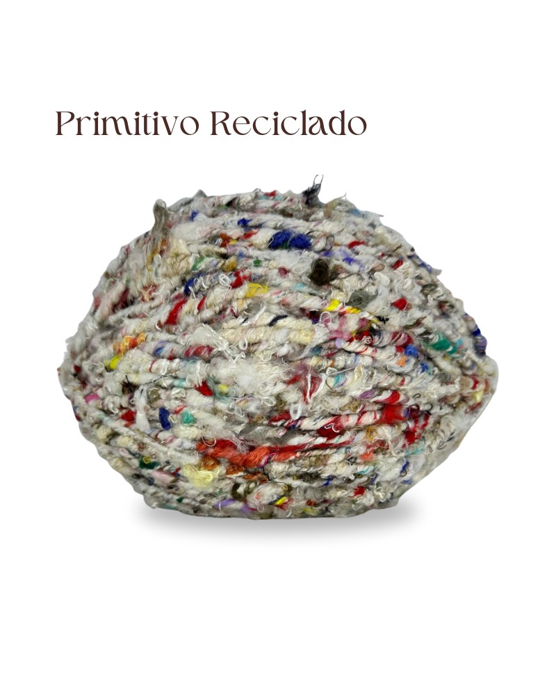 O Fio Primitivo Reciclado nasce do reaproveitamento consciente de sobras da indústria da seda, transformando o que seria descartado em um fio cheio de história, textura e beleza singular.