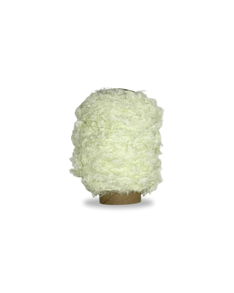 Fio macio com aspecto pluma e desfiado, feito de seda natural e viscose reciclada. Ideal para criações autorais, arte têxtil e peças de impacto visual. Produto do bazar com preço especial.