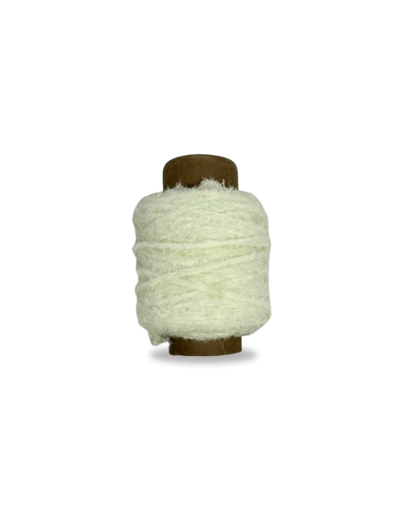 Fio macio com aspecto pluma e desfiado, feito de seda natural e viscose reciclada. Ideal para criações autorais, arte têxtil e peças de impacto visual. Produto do bazar com preço especial.