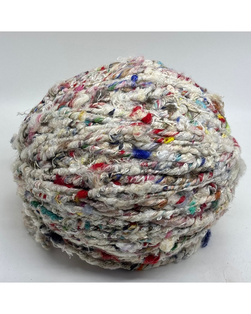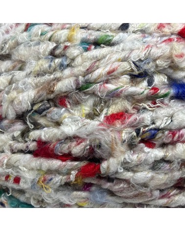 Fio 100% seda pura produzido a partir do reaproveitamento consciente de sobras da indústria da seda. Possui acabamento rústico, maciez natural e cores mescladas que criam padrões únicos e irrepetíveis. Ideal para peças autorais como tapetes, bolsas, mantas e artesanatos exclusivos.