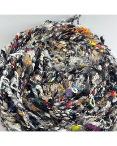 Fio 100% seda pura produzido a partir do reaproveitamento consciente de sobras da indústria da seda. Possui acabamento rústico, maciez natural e cores mescladas que criam padrões únicos e irrepetíveis. Ideal para peças autorais como tapetes, bolsas, mantas e artesanatos exclusivos.